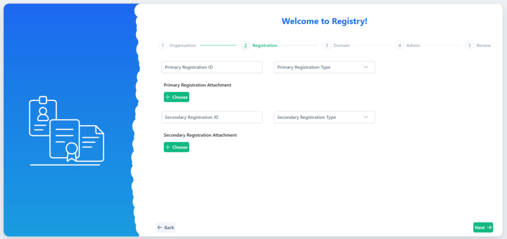 ℹ️ Tip: Secondary registration is optional but recommended if your organization has multiple legal identifiers.